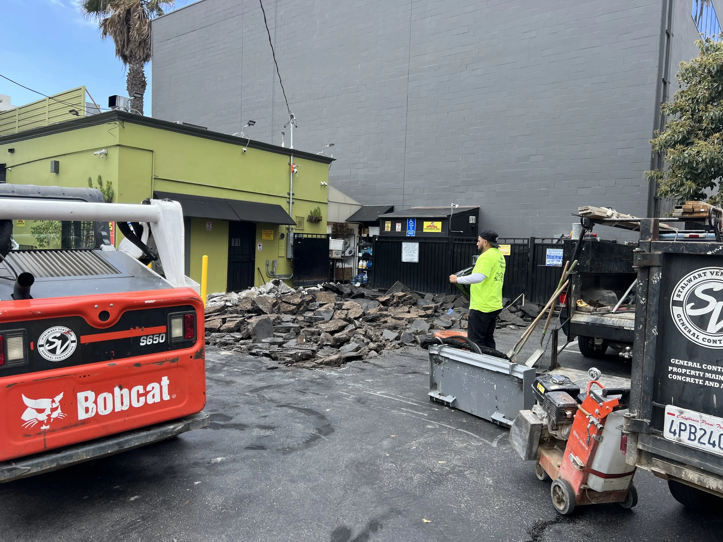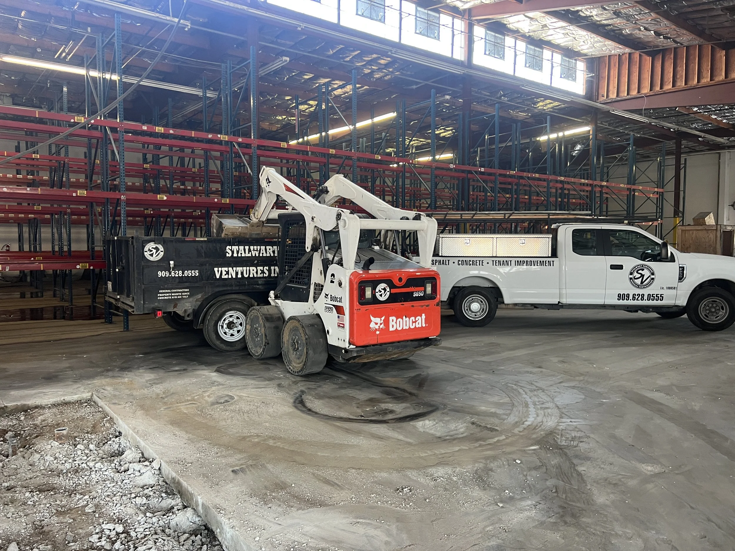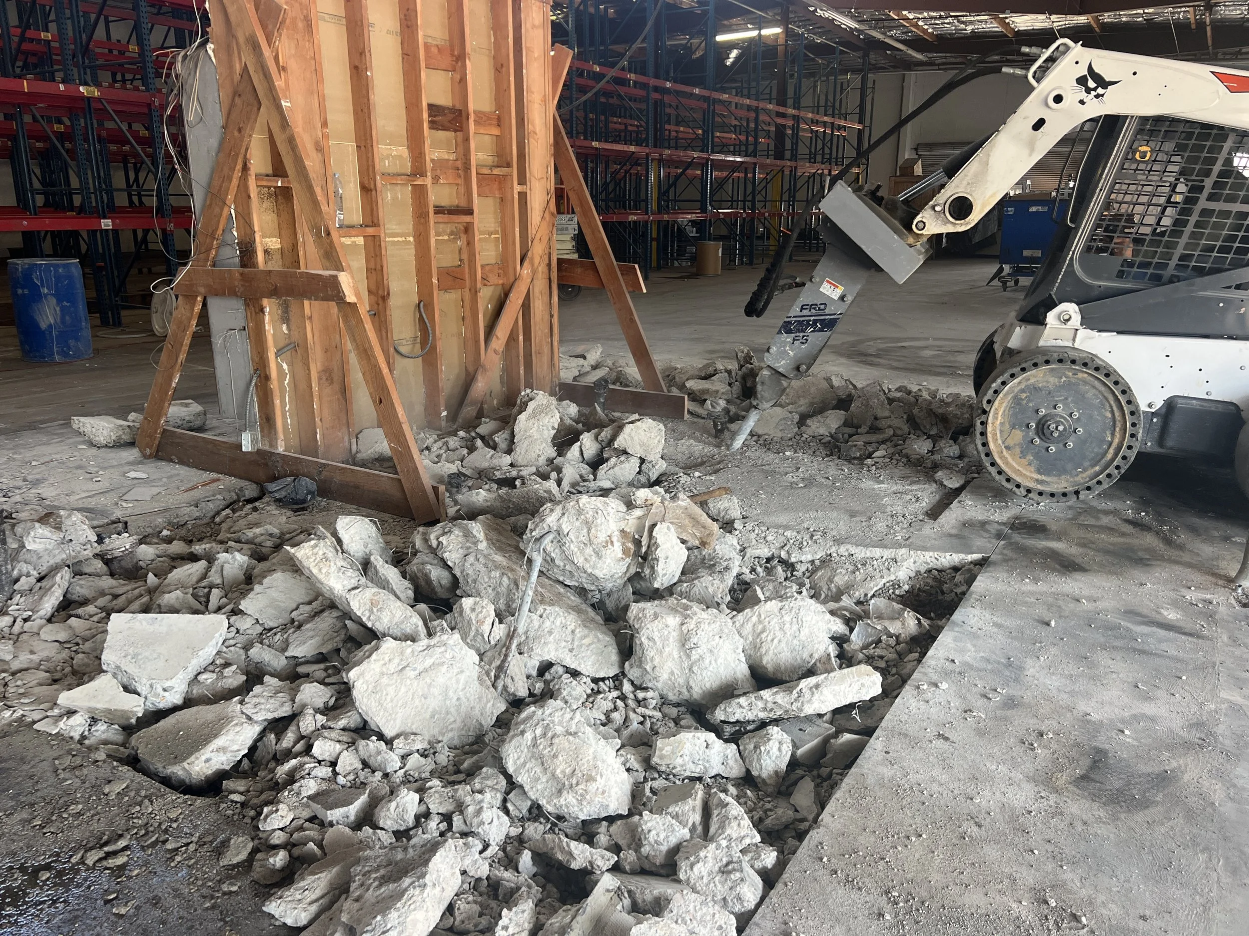 bobcat breaking concrete sidewalk commercial building in Ontario