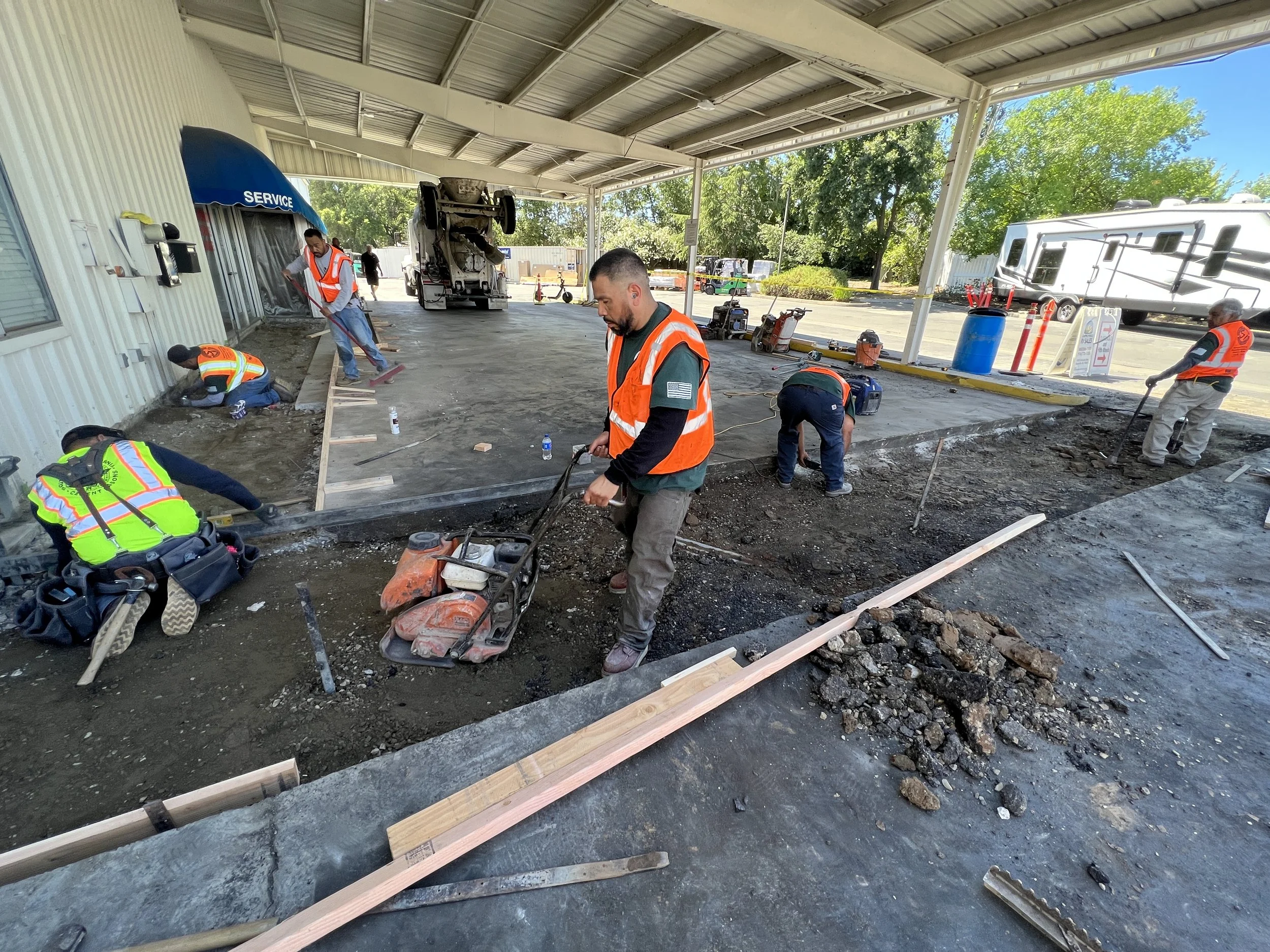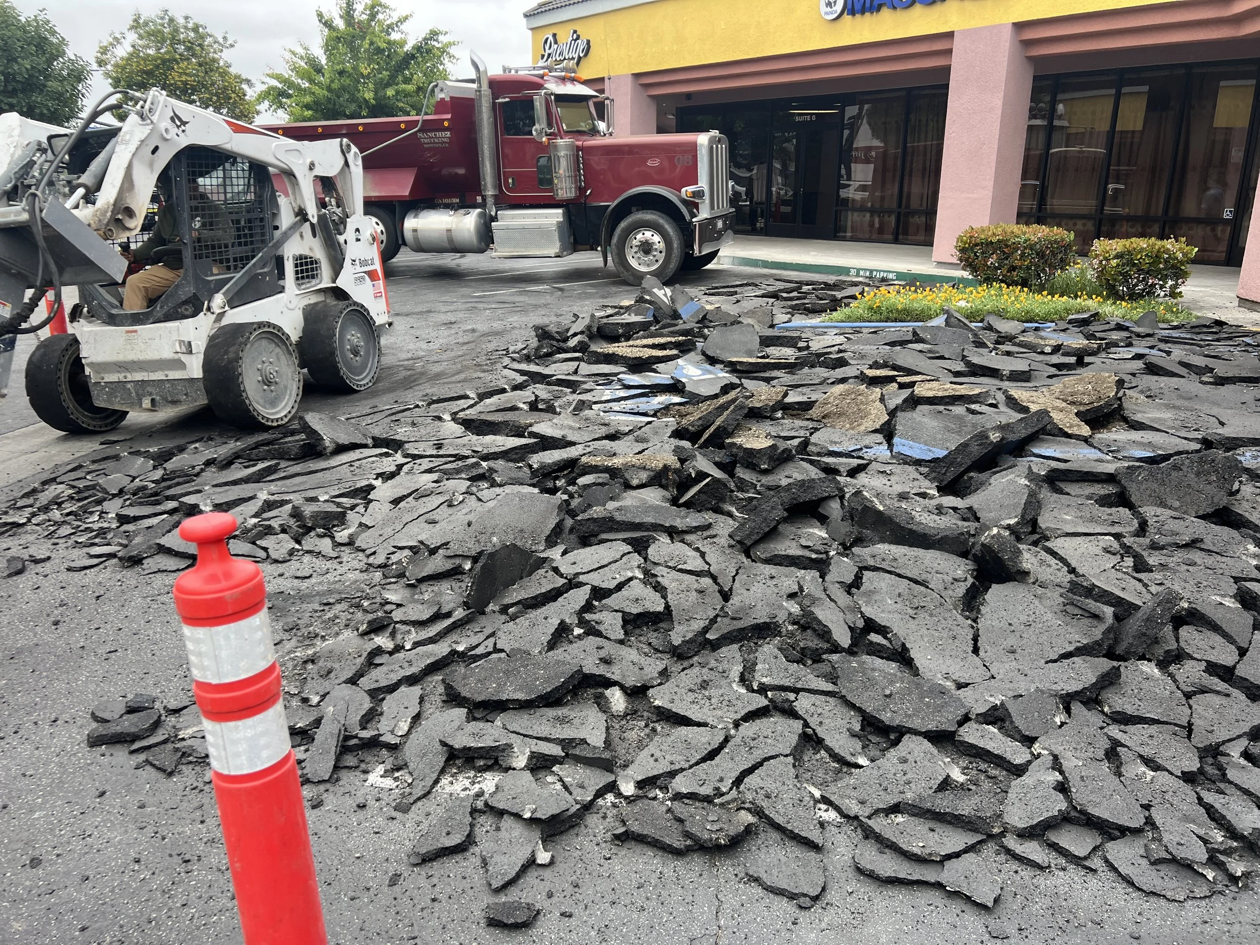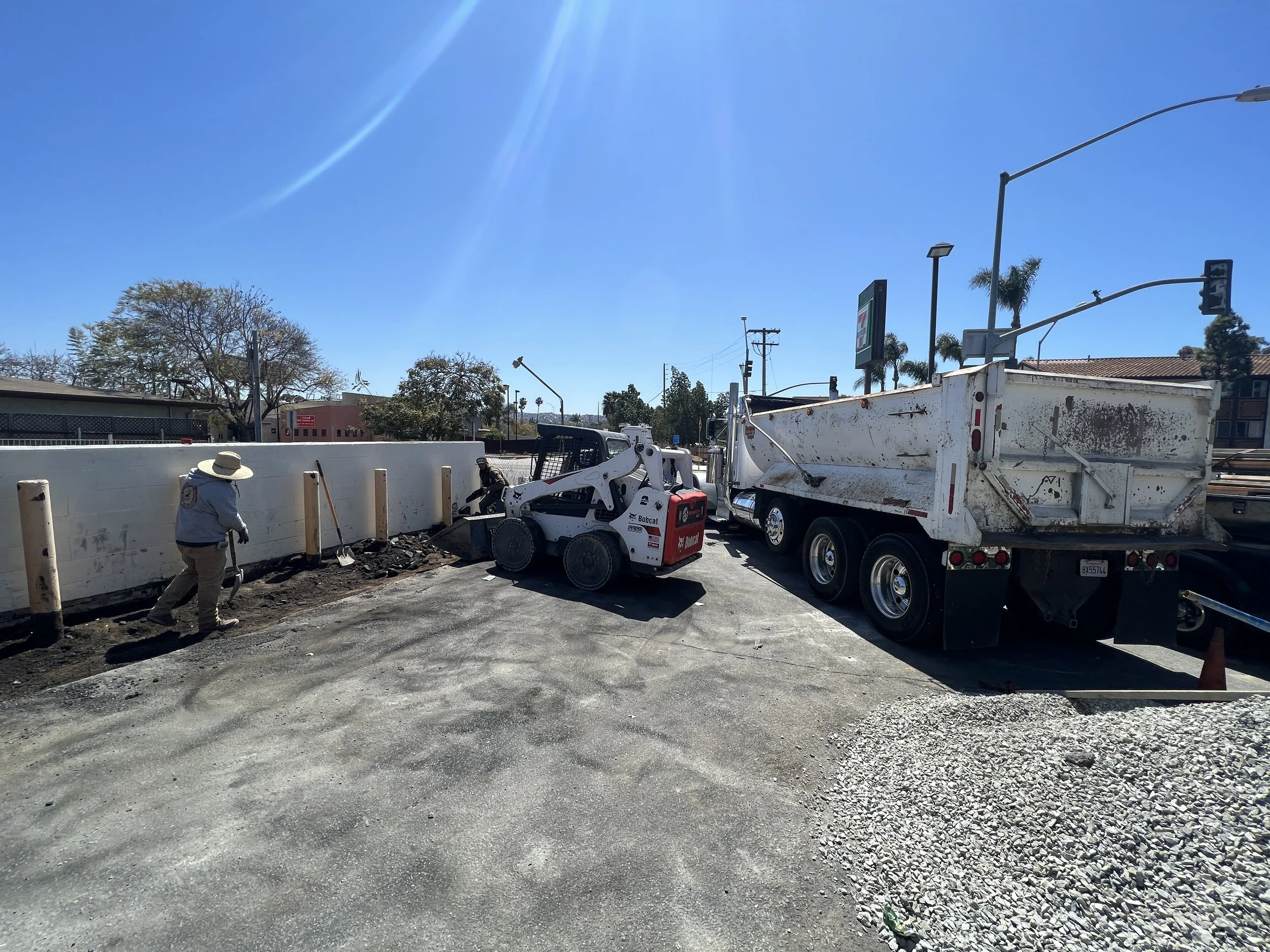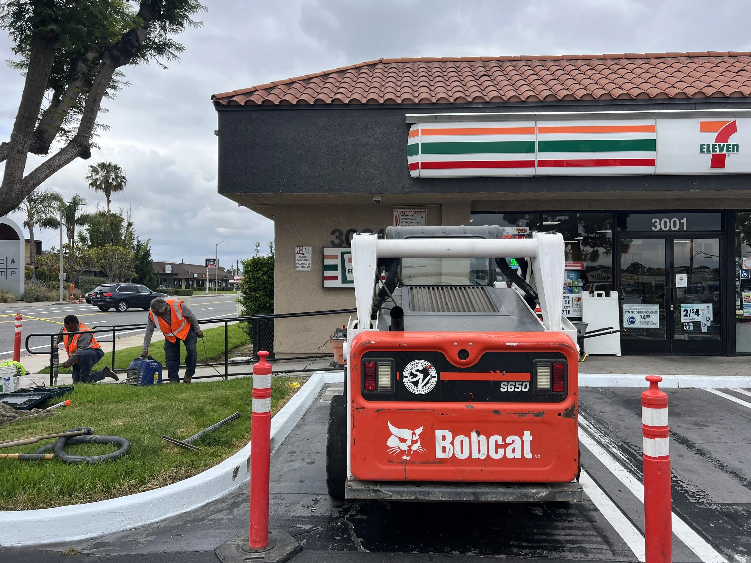 bobcat breaking concrete sidewalk commercial building in Ontario